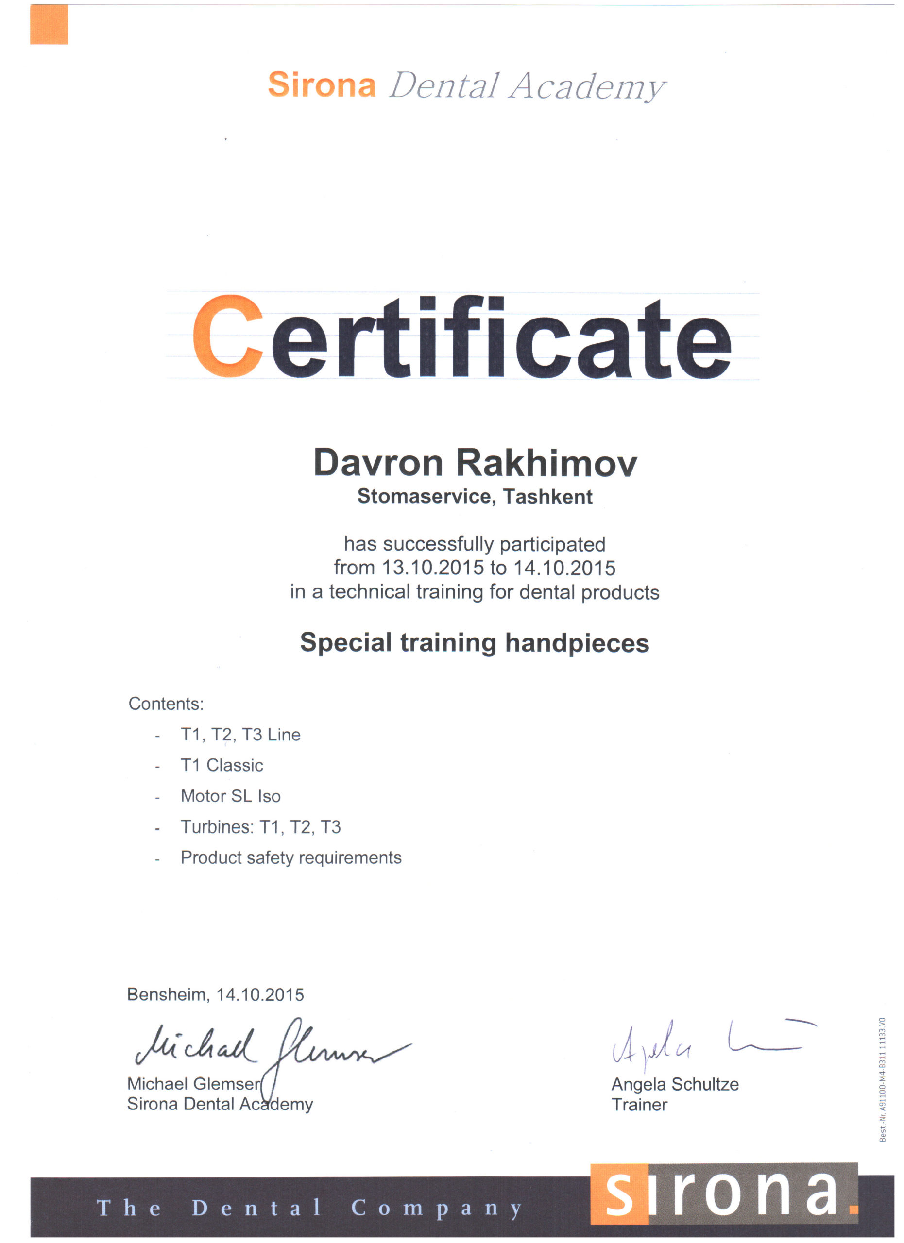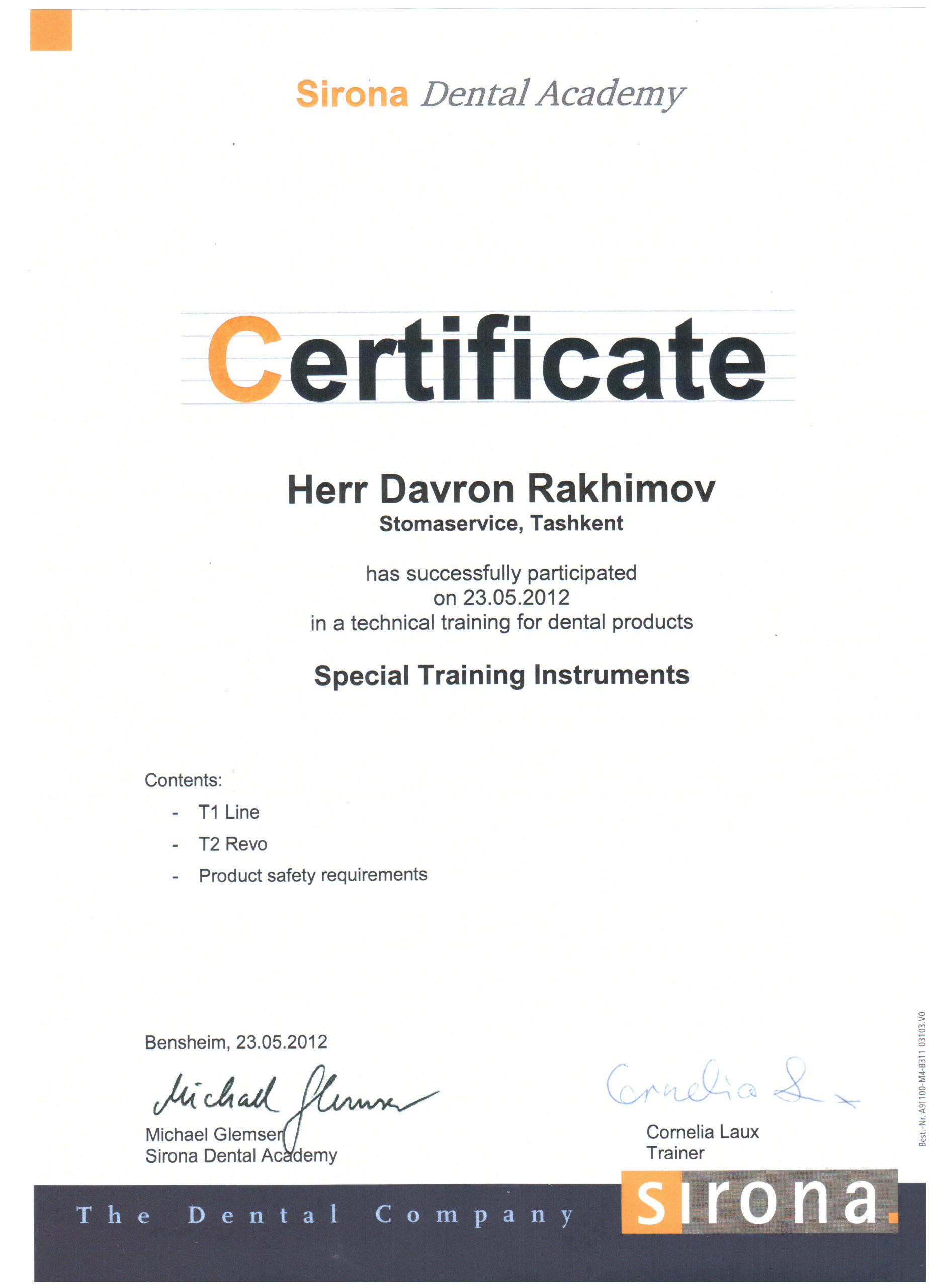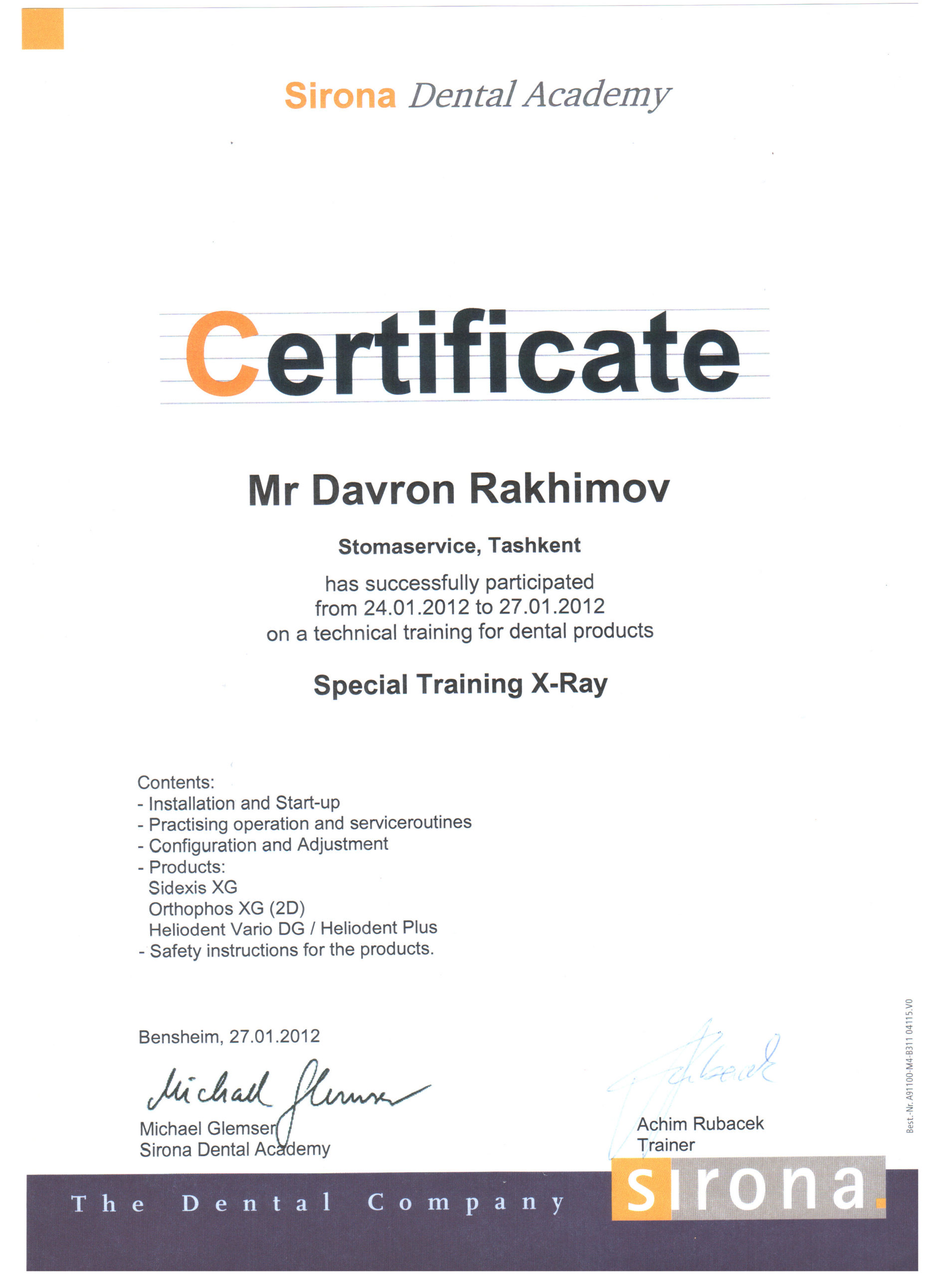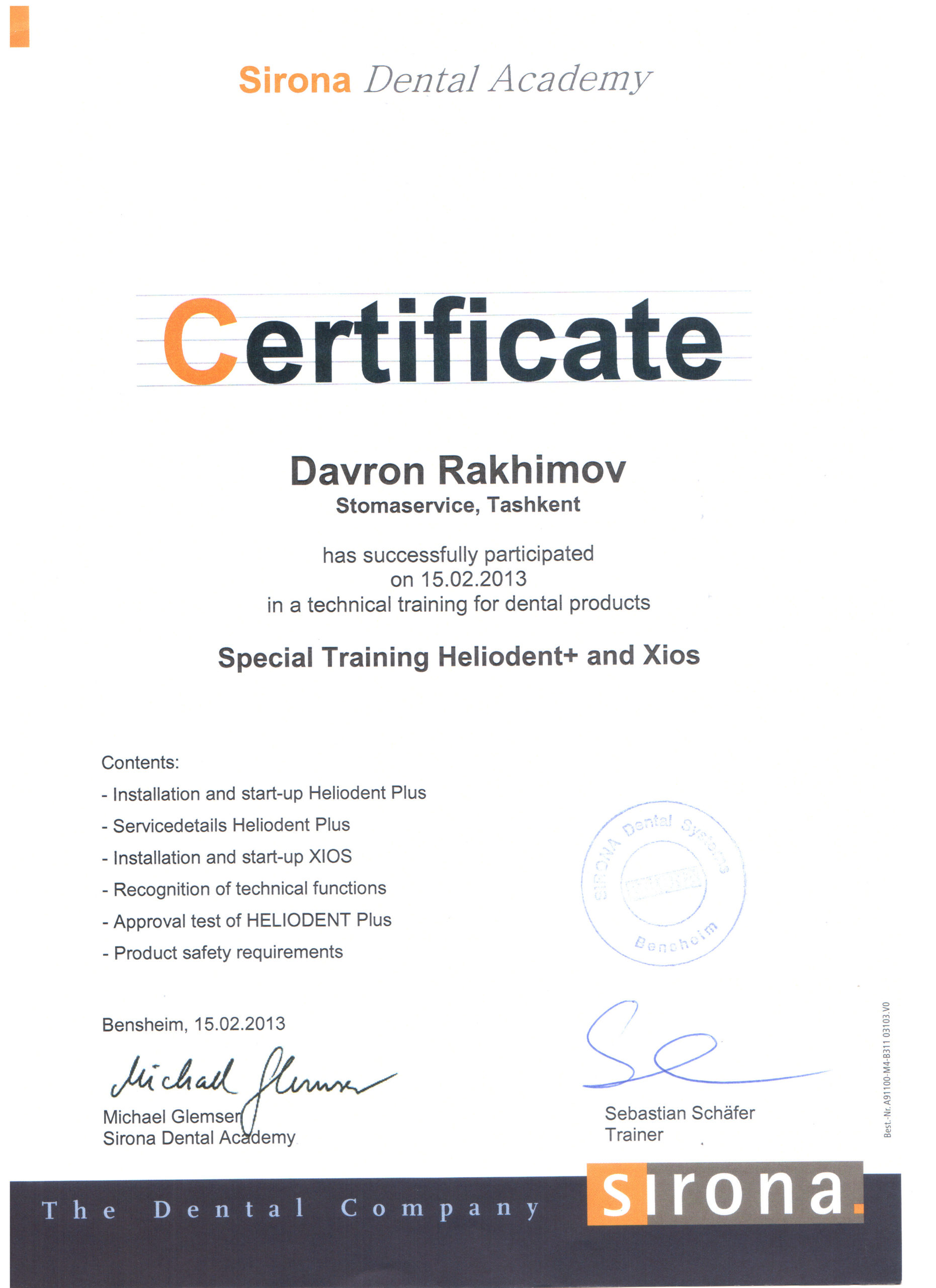Мы являемся представителями крупнейшего немецкого производителя высококачественных стоматологических продуктов и технологий – Dentsply Sirona, в Узбекистане с 2012 года. Вместе с нашими партнерами мы помогаем стоматологам предоставлять пациентам первоклассную стоматологическую помощь — для здоровой улыбки. Мы стремимся преобразовать стоматологию для улучшения здоровья полости рта во всем мире, и мы гордимся тем, что являемся предпочтительным партнером для стоматологических кабинетов, клиник, зуботехнических лабораторий по всему Узбекистану.