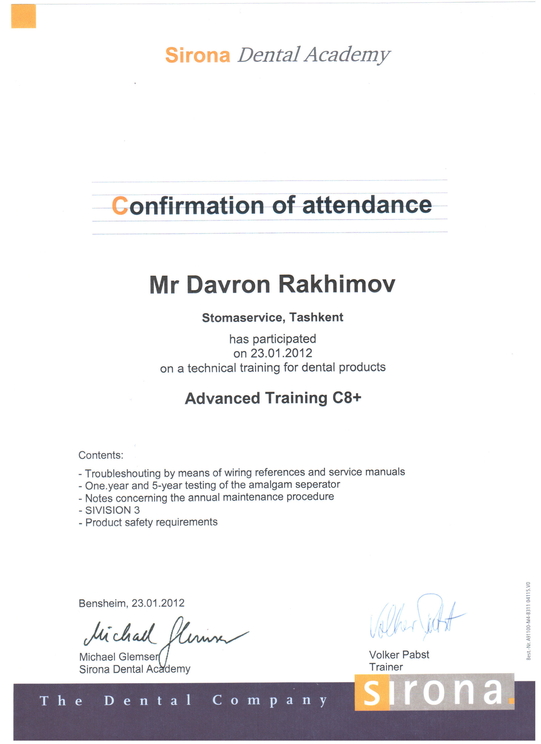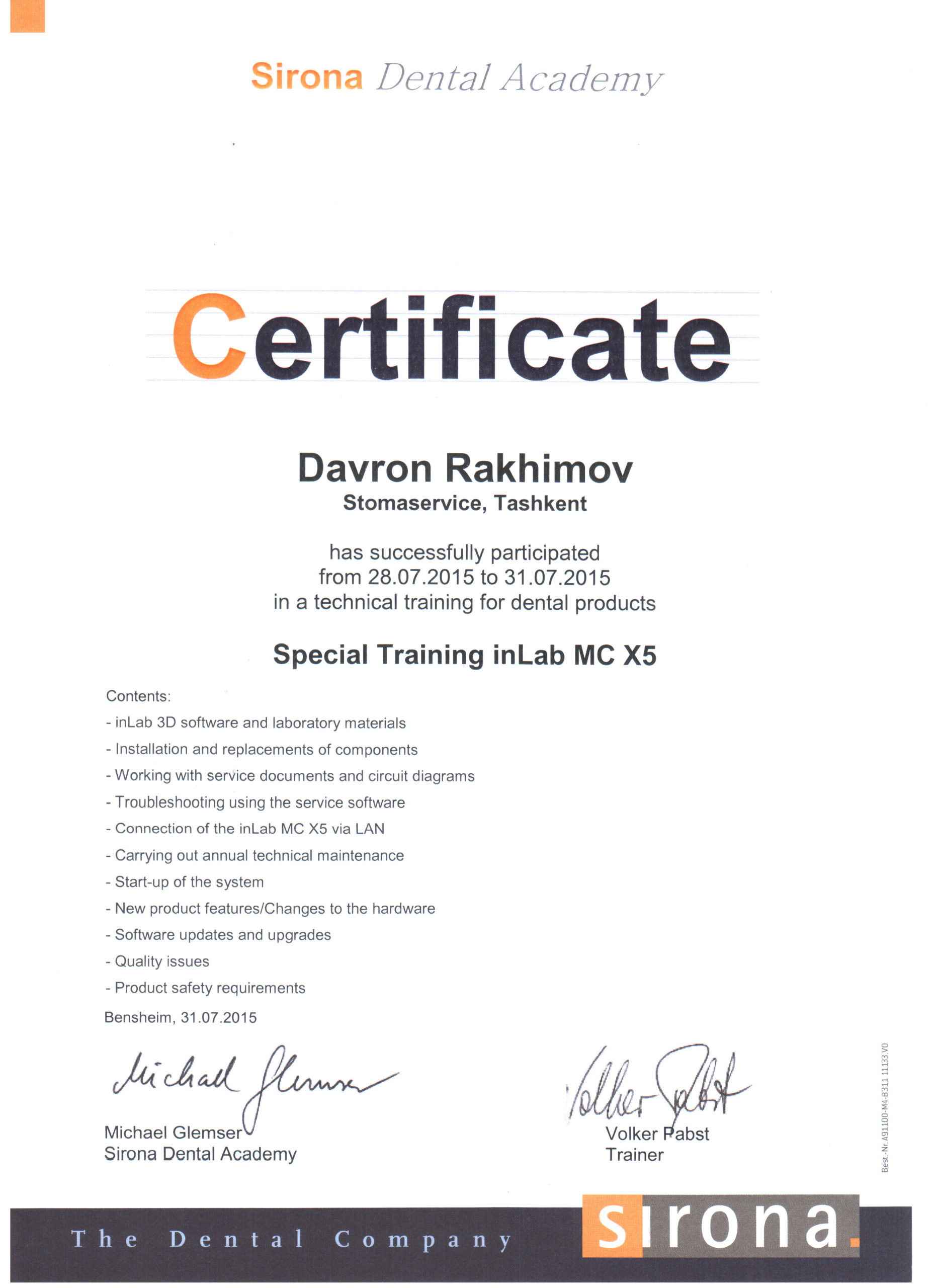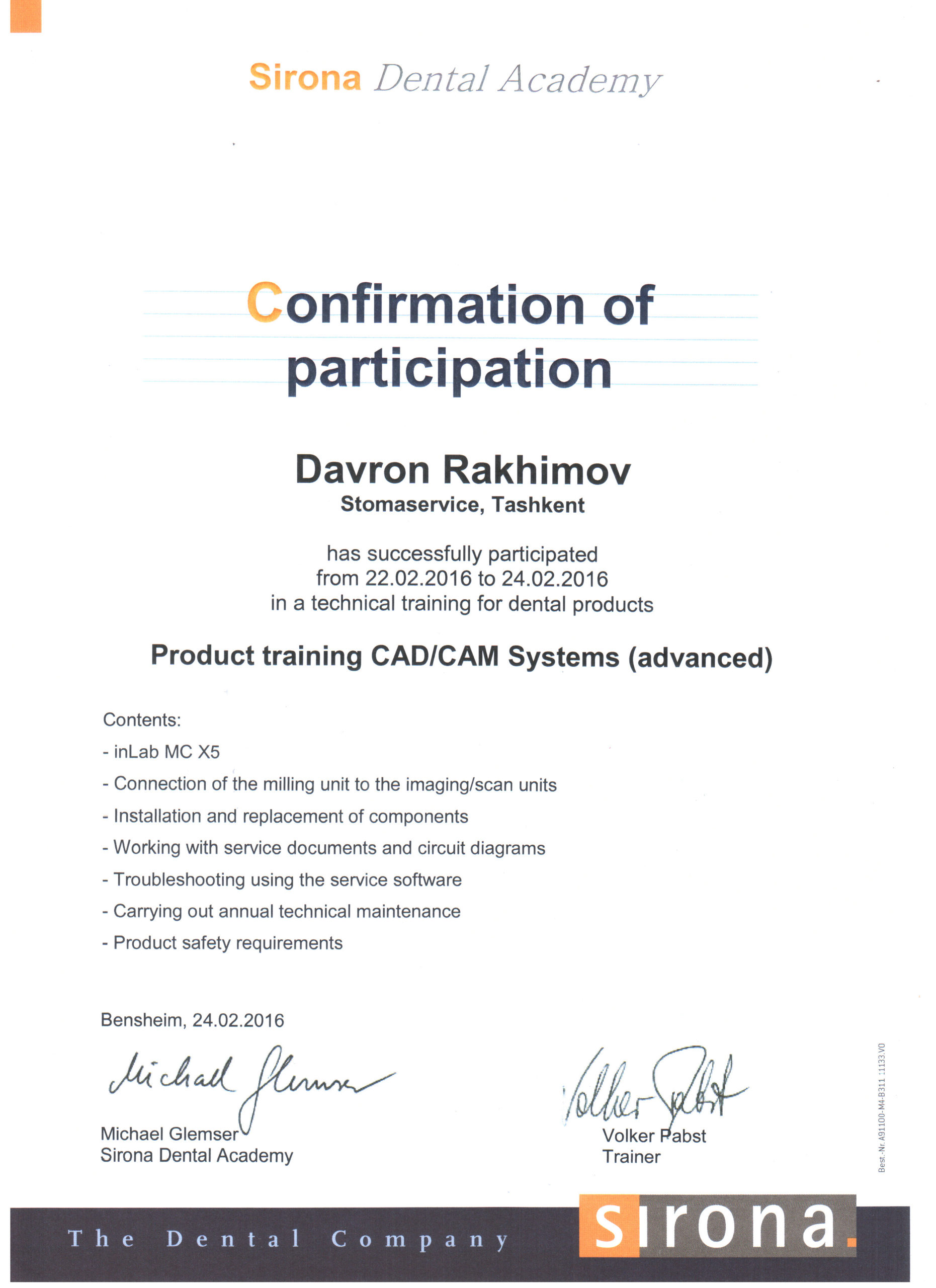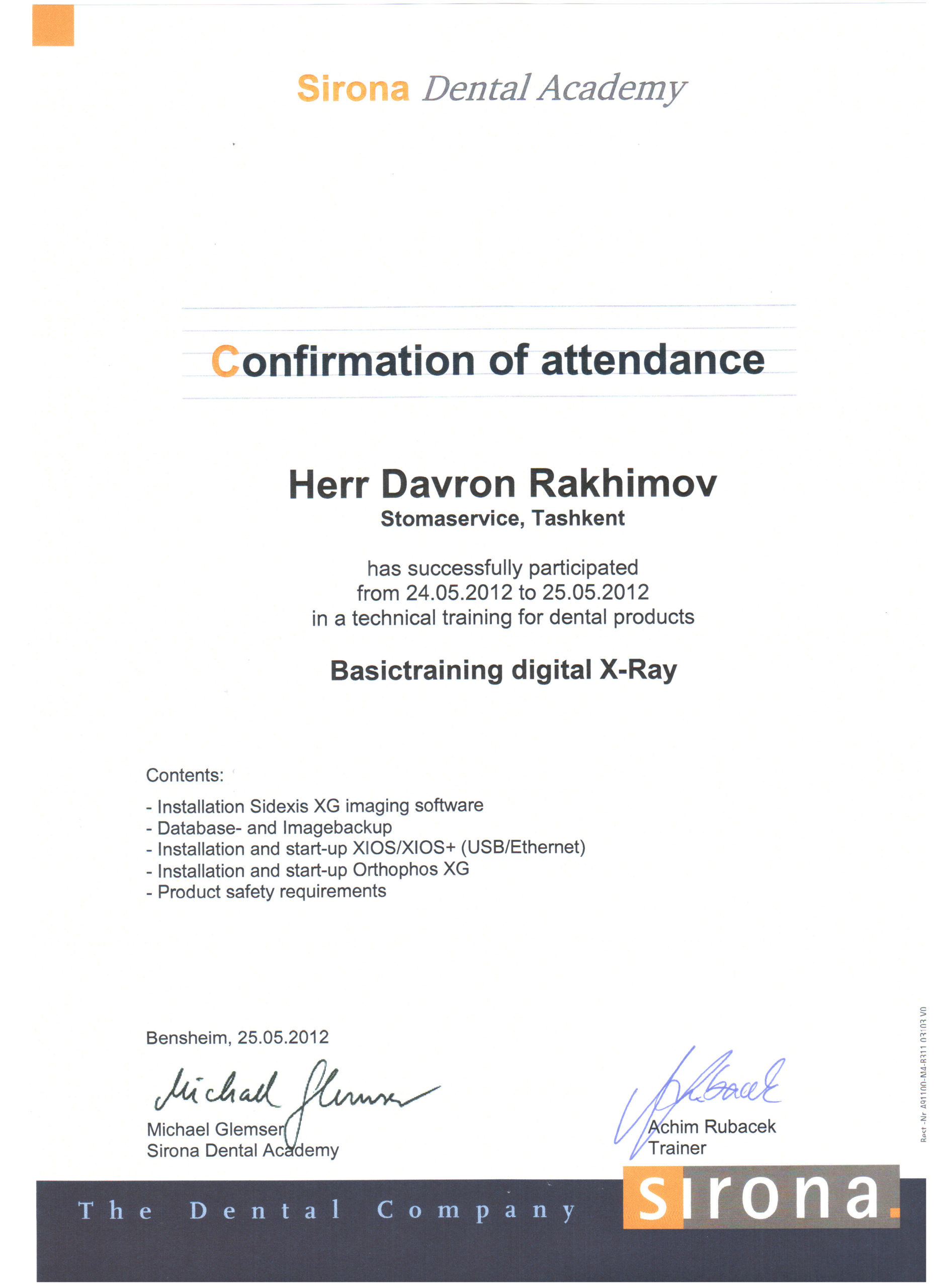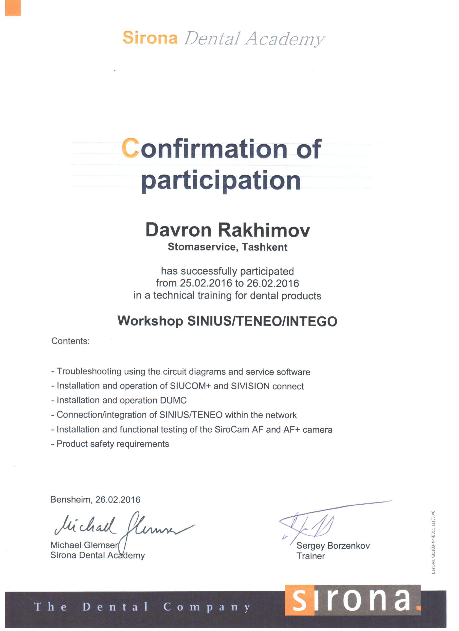Мы являемся представителями крупнейшего немецкого производителя высококачественных стоматологических продуктов и технологий – Dentsply Sirona, в Узбекистане с 2012 года. Вместе с нашими партнерами мы помогаем стоматологам предоставлять пациентам первоклассную стоматологическую помощь — для здоровой улыбки. Мы стремимся преобразовать стоматологию для улучшения здоровья полости рта во всем мире, и мы гордимся тем, что являемся предпочтительным партнером для стоматологических кабинетов, клиник, зуботехнических лабораторий по всему Узбекистану.